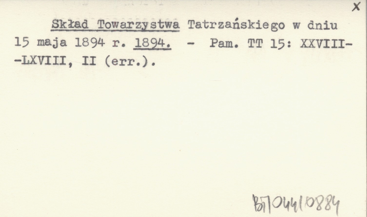 Pamiętnik Towarzystwa Tatrzańskiego, 15: XXVIII-LXVIII, II (err.).