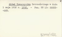 Skład Towarzystwa Tatrzańskiego w dniu 1 maja 1892 r. 1892