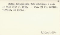 Skład Towarzystwa Tatrzańskiego w dniu 15 maja 1894 r. 1894
