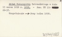 Skład Towarzystwa Tatrzańskiego w dniu 15 marca 1898 r. 1898