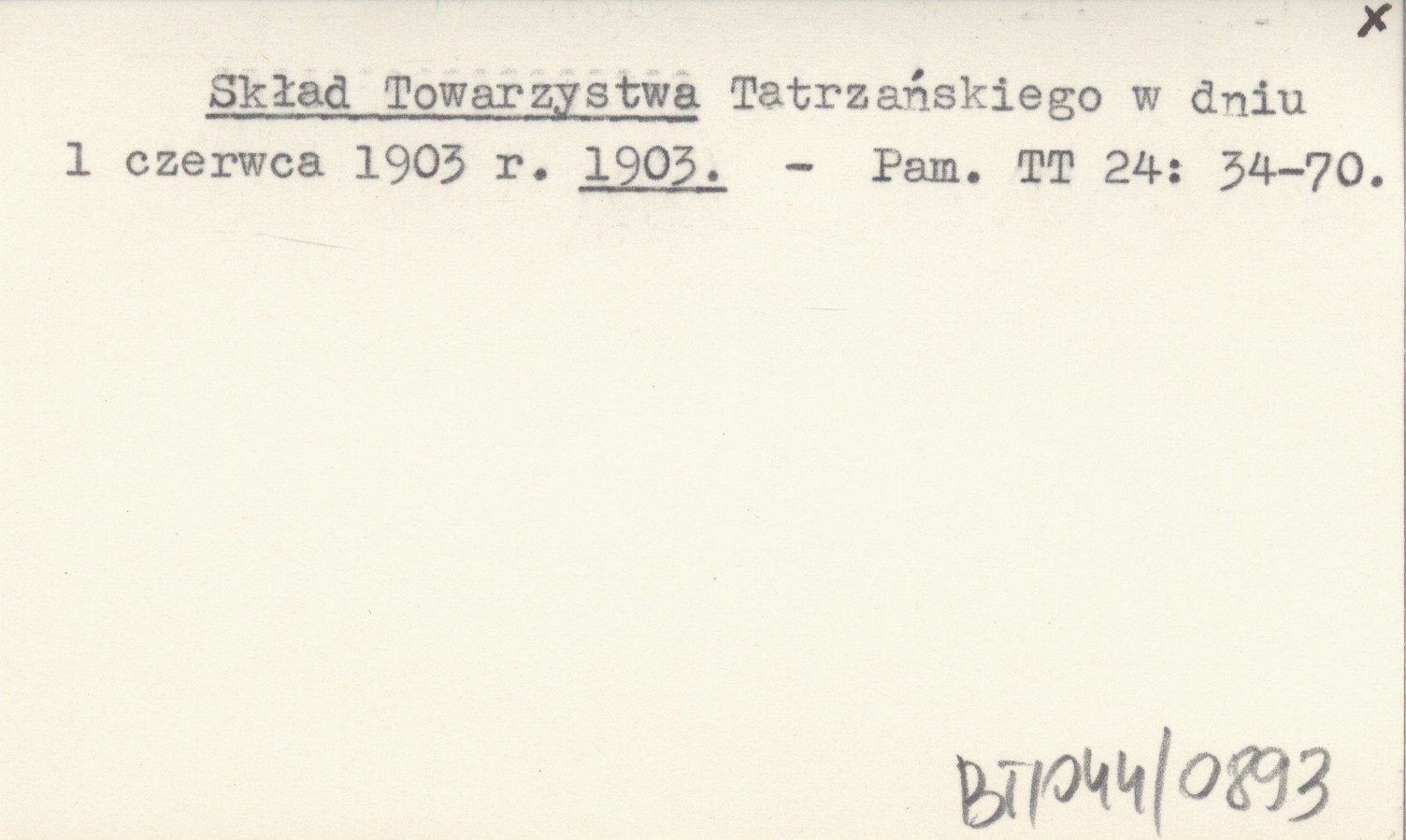 Skład Towarzystwa Tatrzańskiego w dniu 1 czerwca 1903 r. 1903