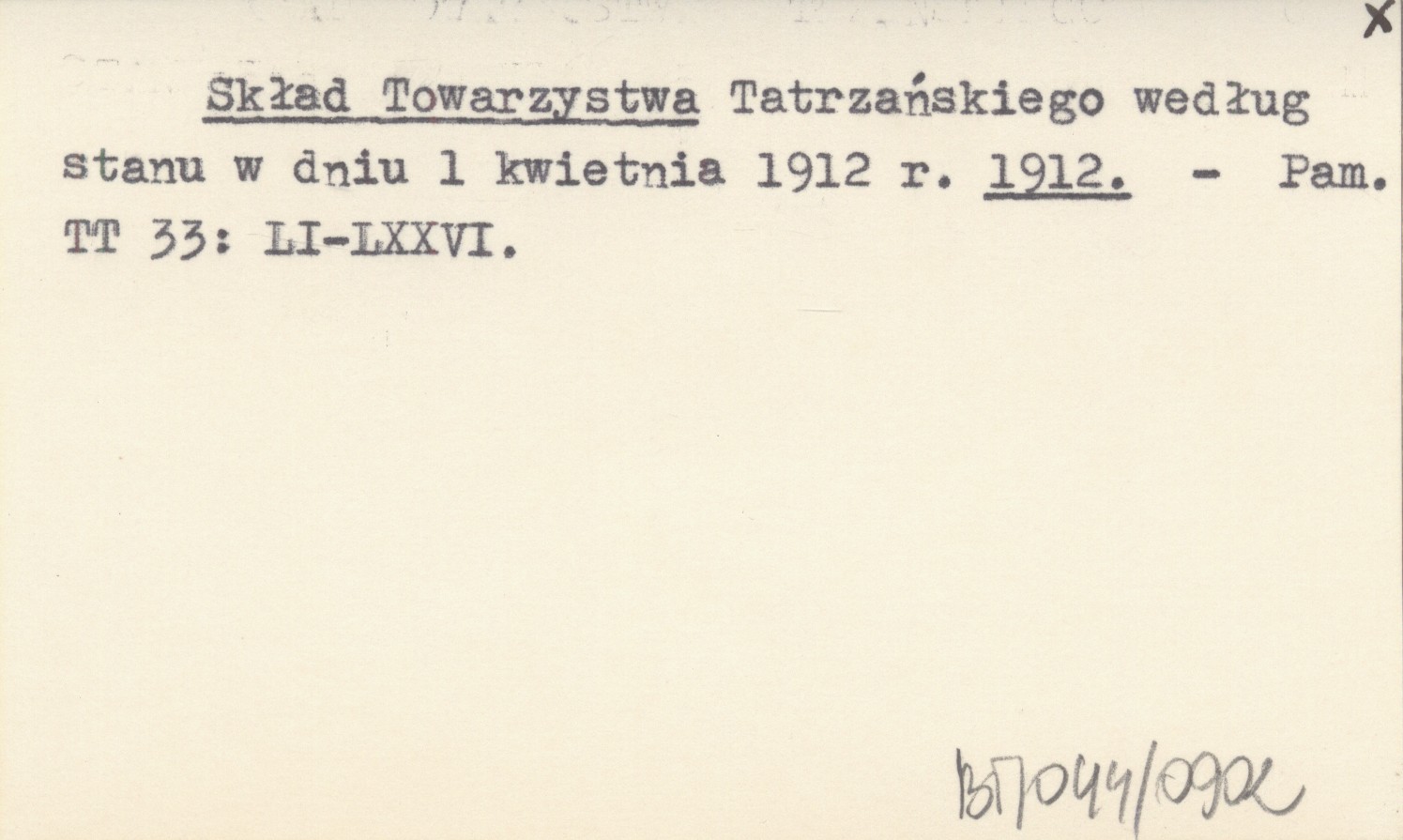 Skład Towarzystwa Tatrzańskiego według stanu w dniu 1 kwietnia 1912 r. 1912