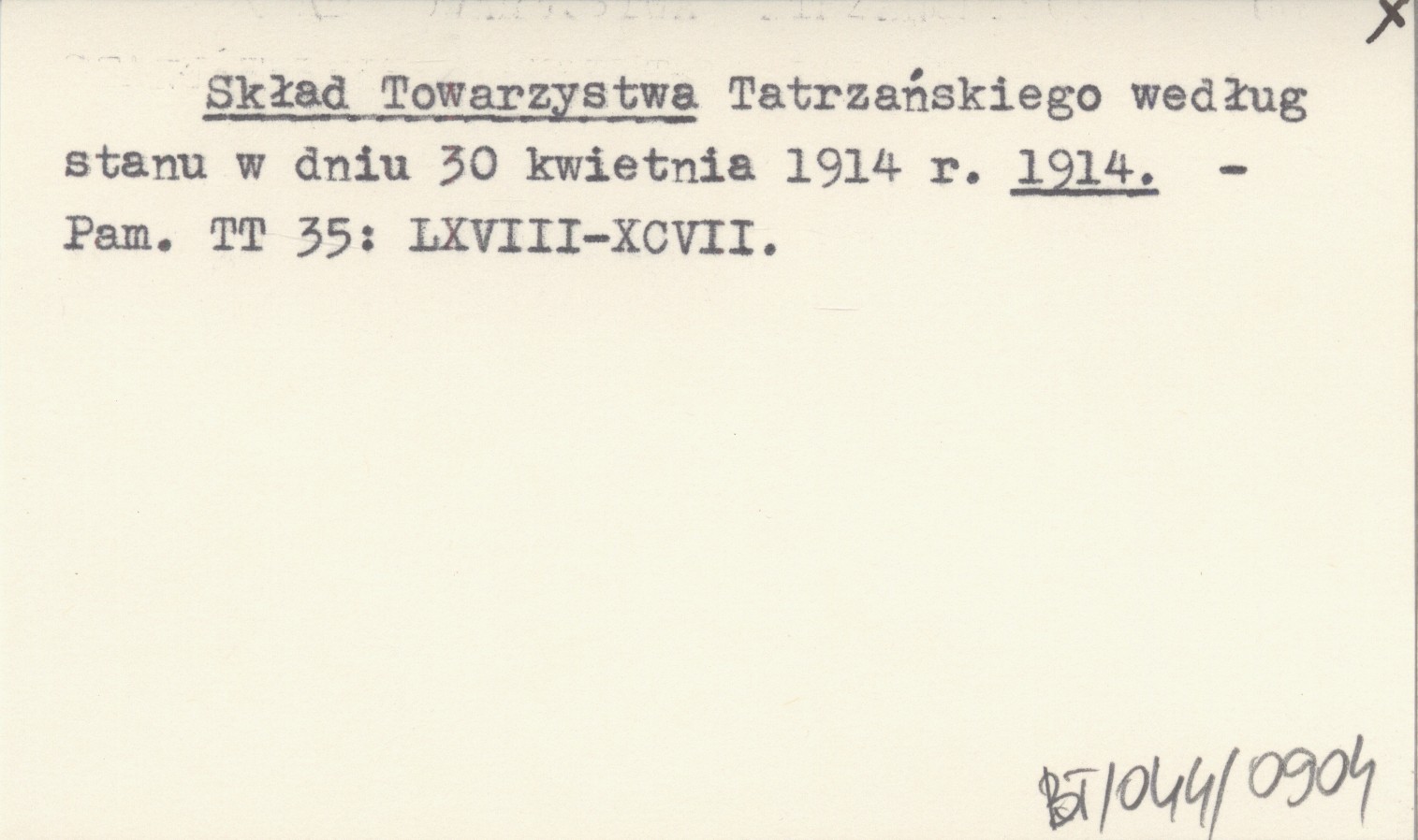 Skład Towarzystwa Tatrzańskiego według stanu w dniu 30 kwietnia 1914 r. 1914