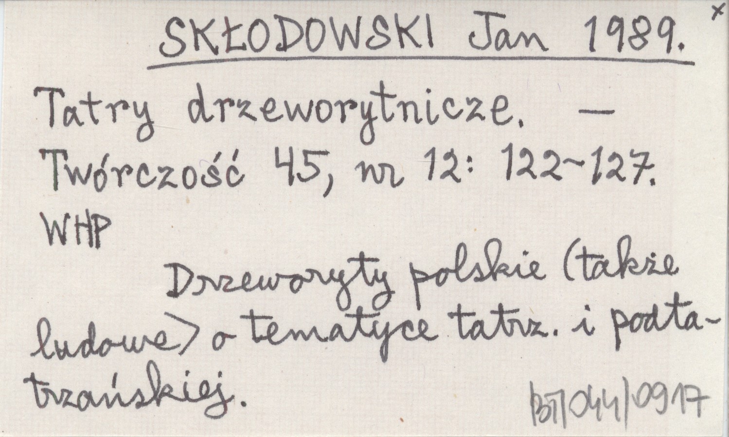 Twórczość, 45, nr 12: 122-127. Drzeworyty polskie (także ludowe) o tematyce tatrzańskiej i podtatrzańskiej.