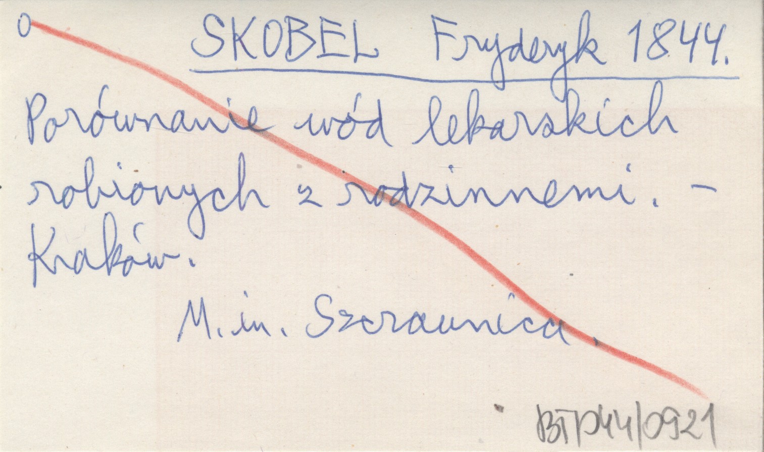 SKOBEL Fryderyk 1844 Porównanie wód lekarskich robionych z rodzinnemi.