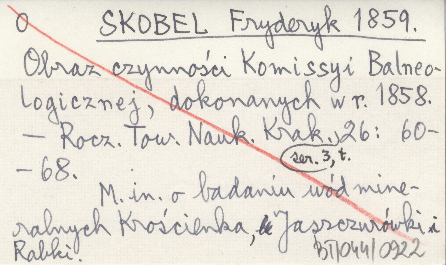 Rocznik Towarzystwa Naukowego Krakowskiego, Ser. 3, t. 26: 60-68. M. in. o badaniu wód mineralnych Krościenka, Jaszczurówki i Rabki.