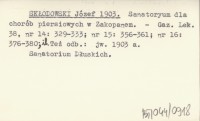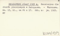 SKŁODOWSKI Józef 1903 a Sanatoryum dla chorób piersiowych w Zakopanem.