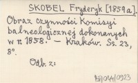 SKOBEL Fryderyk [1859 a] Obraz czynności Komisyi balneologicznej dokonanych w r. 1858.