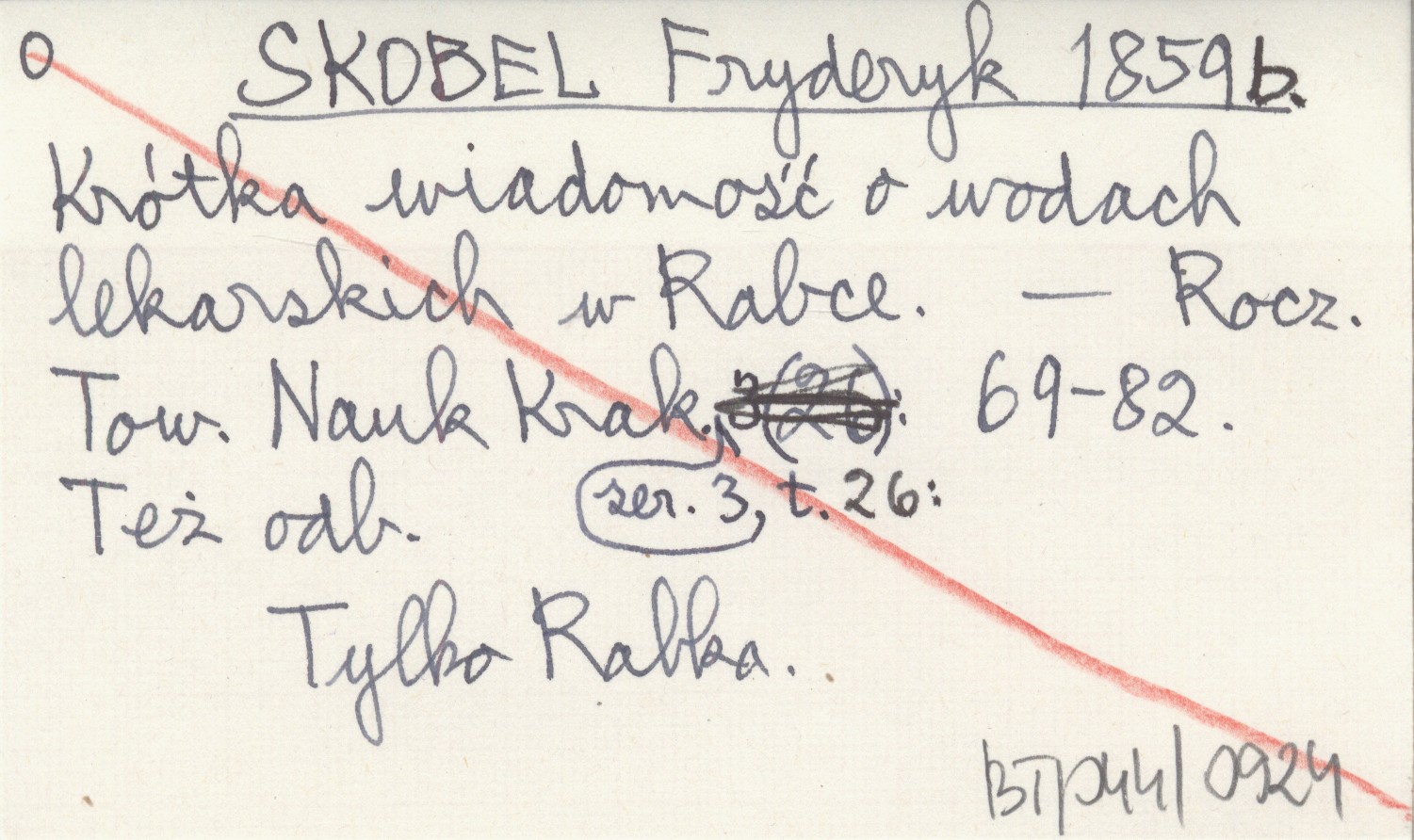 SKOBEL Fryderyk 1859 b Krótka wiadomość o wodach lekarskich w Rabce.