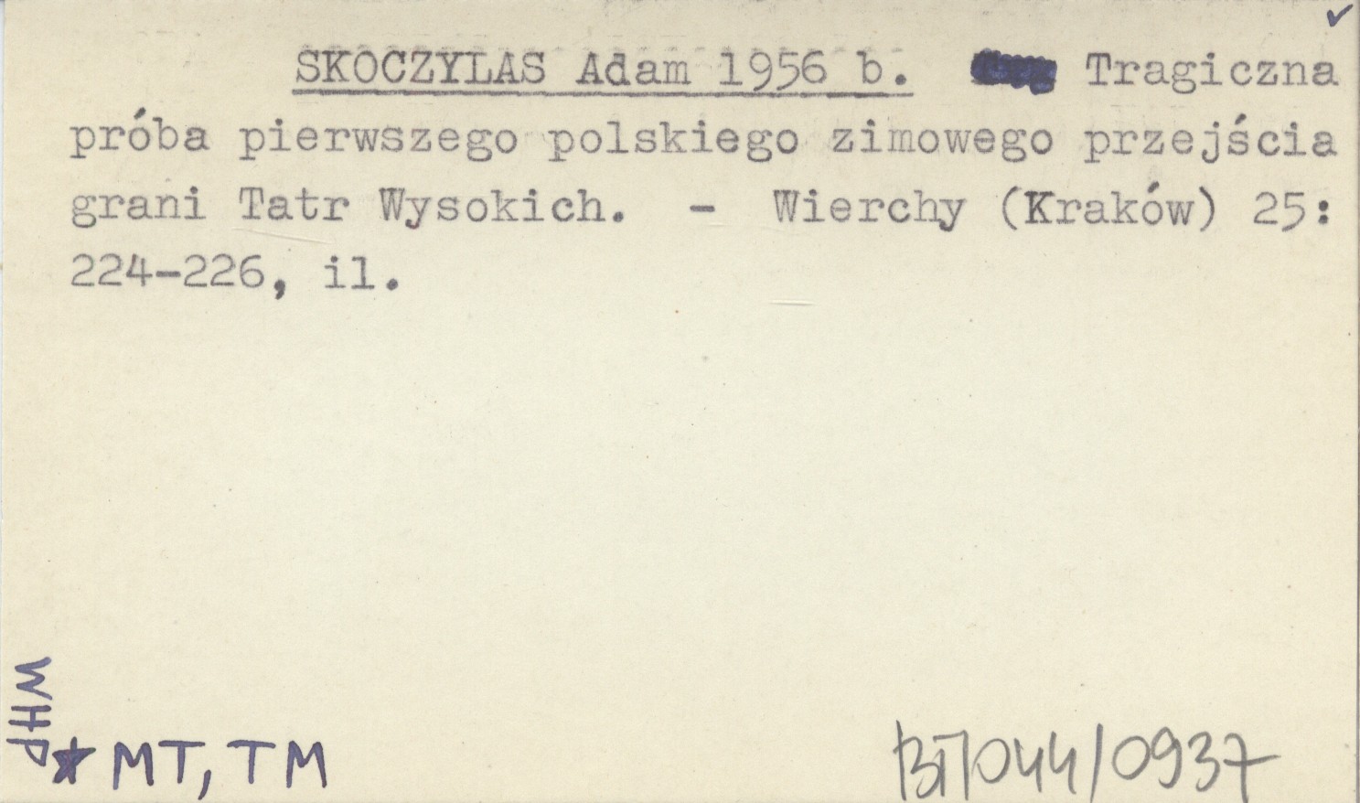 SKOCZYLAS Adam 1956 b Tragiczna próba pierwszego polskiego zimowego przejścia grani Tatr Wysokich.
