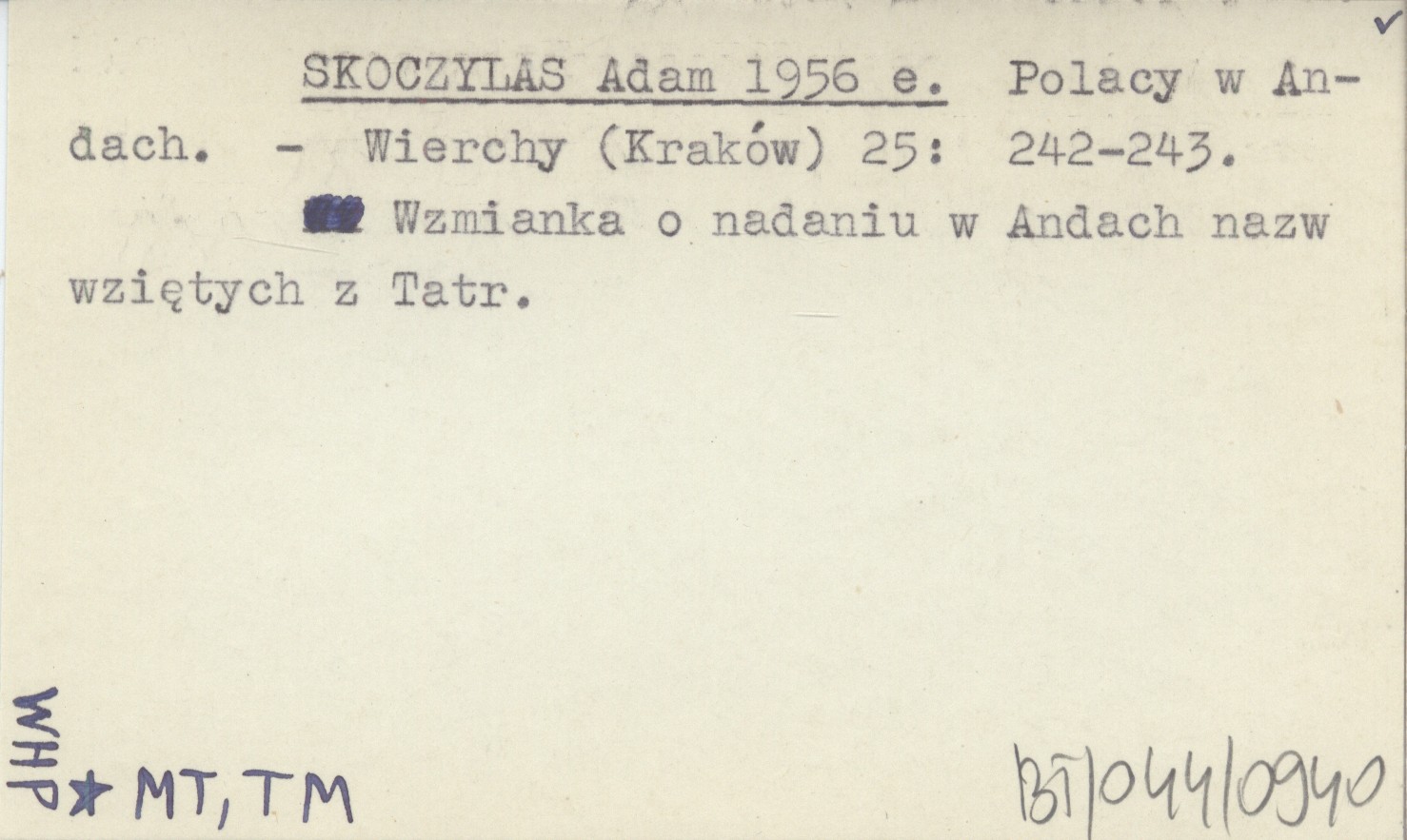 Wierchy (Kraków) , 25: 242-243. Wzmianka o nadaniu w Andach nazw wziętych z Tatr.