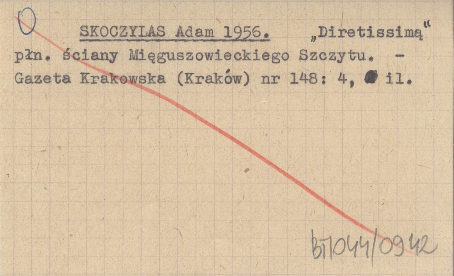 SKOCZYLAS Adam 1956 "Diretissimą" płn. ściany Mięguszowieckiego Szczytu.