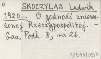 SKOCZYLAS Ludwik 1920... O godności znieważonej Rzeczypospolitej.