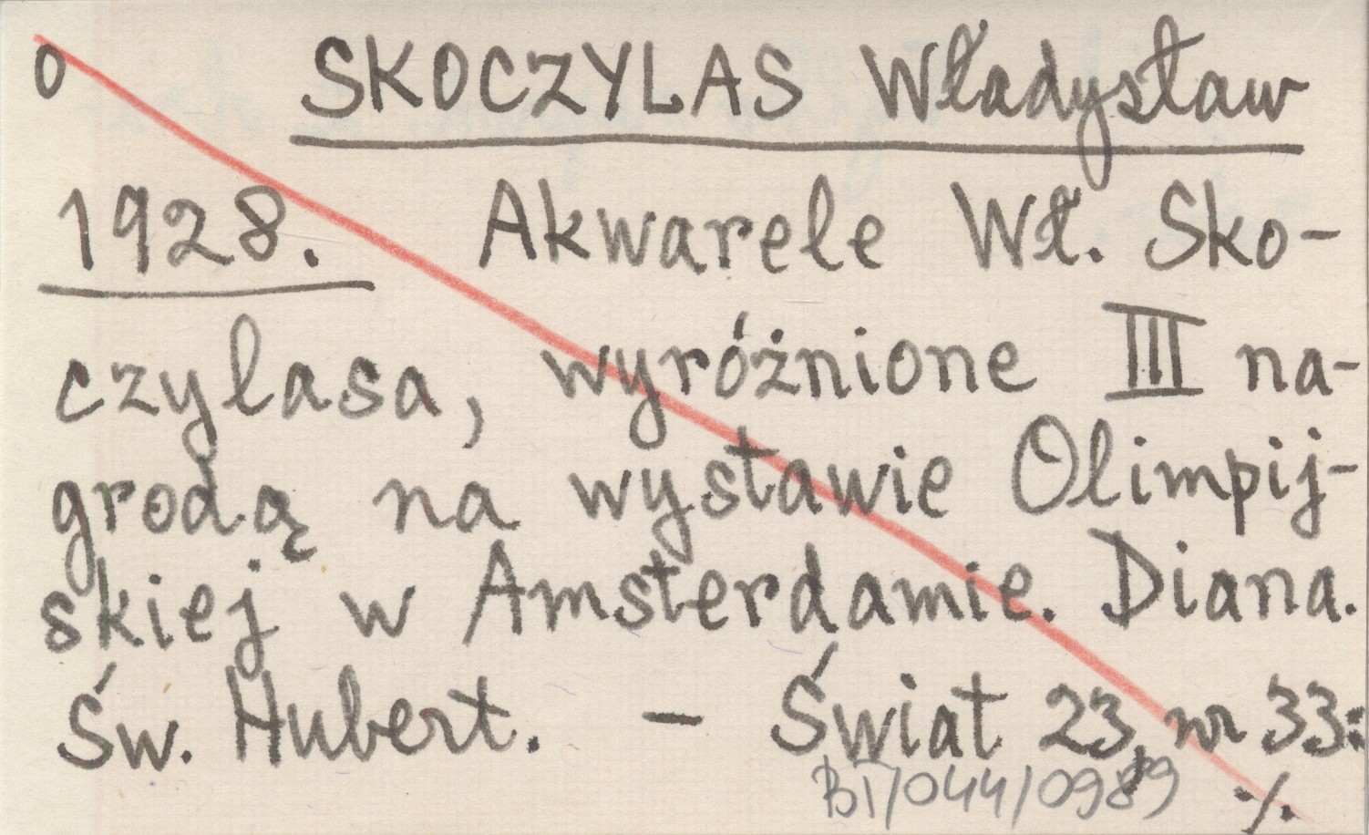 SKOCZYLAS Władysław 1928 Akwarele Wł. Skoczylasa, wyróżnione III nagrodą na wystawie Olimpijskiej w Amsterdamie. Diana. Św. Hubert.