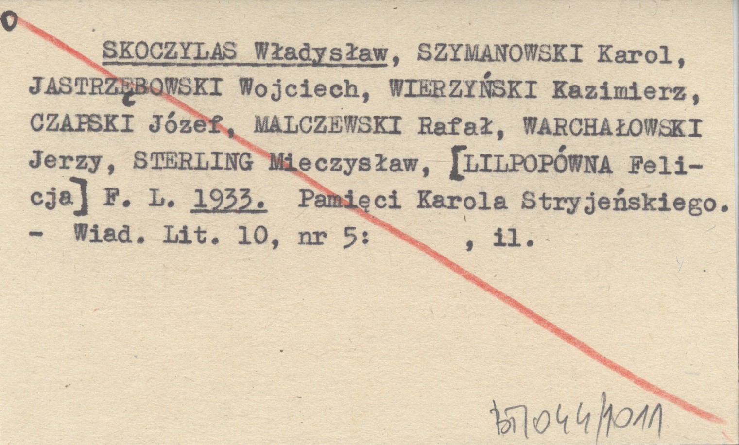 SKOCZYLAS Władysław SZYMANOWSKI, Karol. ; JASTRZĘBOWSKI, Wojciech. ; WIERZYŃSKI, Kazimierz. ; CZAPSKI, Józef. ; MALCZEWSKI, Rafał. ; WARCHAŁOWSKI, Jerzy. ; STERLING, Miec 1933 Pamięci Karola Stryjeńskiego.