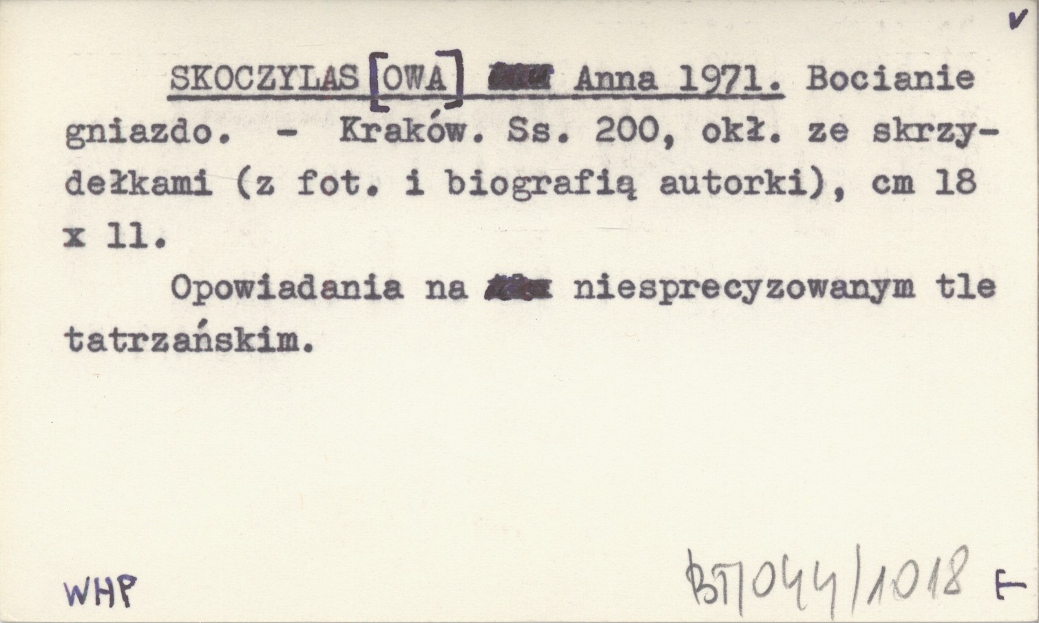 Kraków , 200 s., okł. (fot. i biografia autorki), 18x11 cm. Opowiadania na niesprecyzowanym tle tatrzańskim.