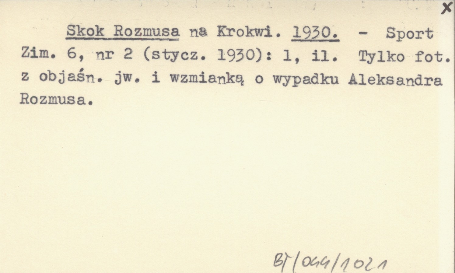 Sport Zimowy, 6, nr 2 (styczeń 1930): 1, il. Tylko fot. z objaśn. jw. i wzmianką o wypadku Aleksandra Rozmusa.