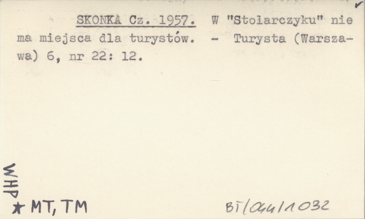 SKONKA Cz. 1957 W "Stolarczyku" nie ma miejsca dla turystów.