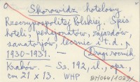 Skorowidz hotelowy Rzeczypospolitej Polskiej. Spis hoteli, pensjonatów, zajazdów, sanatorjów, lecznic i.t.d. Drugi rocznik. 1930-1931