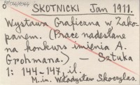 SKOTNICKI Jan 1911 Wystawa Graficzna w Zakopanem. (Prace nadesłane na konkurs imienia A. Grohmana).