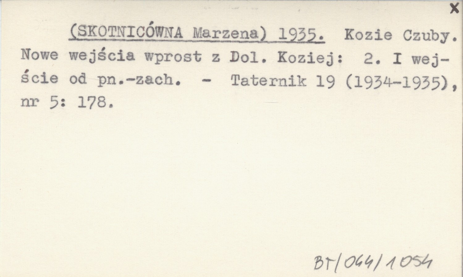 [SKOTNICÓWNA Marzena] 1935 Kozie Czuby. Nowe wejścia wprost z Dol. Koziej: 2. I wejście od pn.-zach.