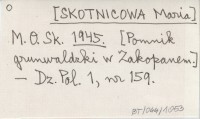 M. O. Sk. [SKOTNICOWA Maria] 1945 [Pomnik grunwaldzki w Zakopanem.]