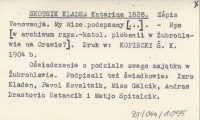 SKOTSIK KLADEN Katarina 1828 Zápis Venovanja. My Nize podepsany [...].