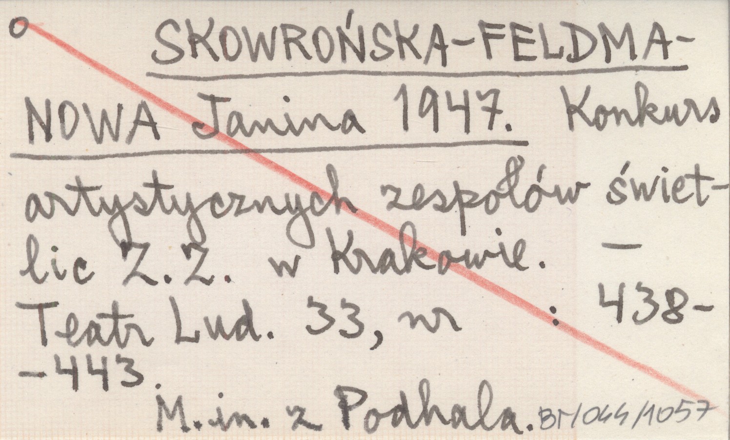 SKOWROŃSKA-FELDMANOWA Janina 1947 Konkurs artystycznych zespołów świetlic Z. Z. w Krakowie.