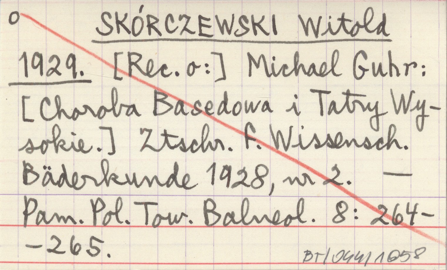 SKÓRCZEWSKI Witold 1929 [Rec. o:] Michael Guhr: [Choroba Basedowa i Tatry Wysokie.] Zeitschrift für wissenschaftliche Bäderkunde 1928, nr 2.