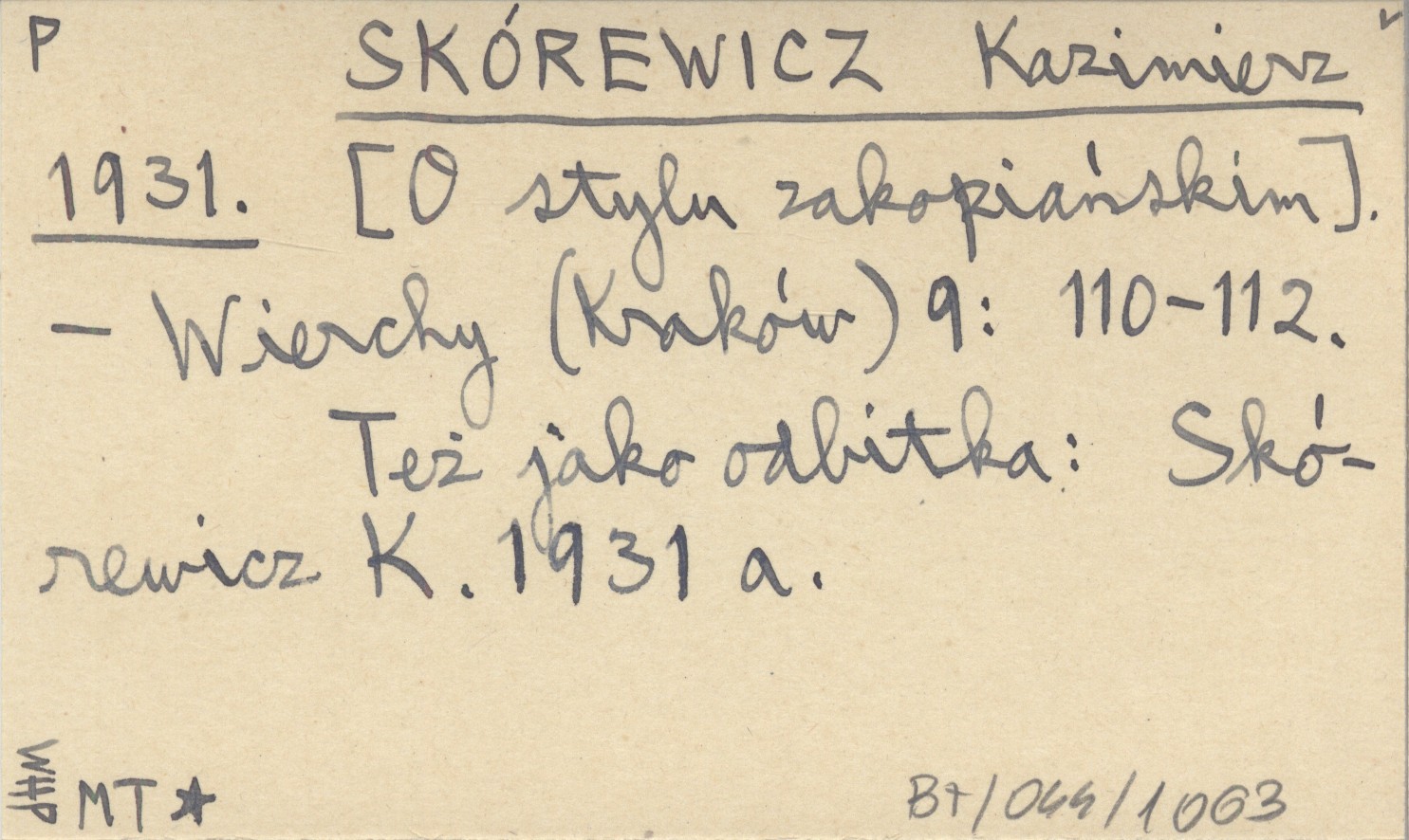 Wierchy (Kraków) , 9: 110-112. Też jako odbitka: SKÓREWICZ K. 1931 a.
