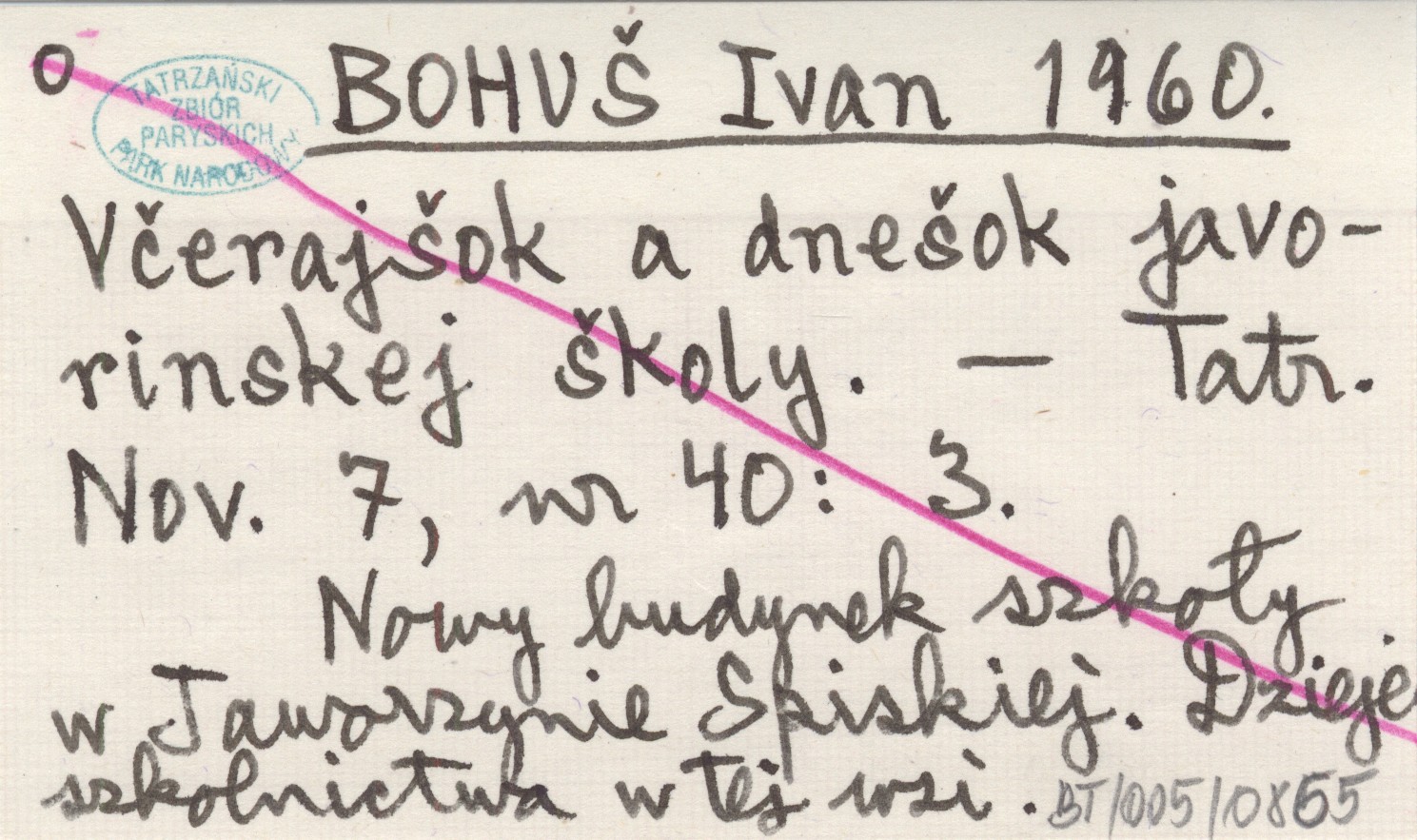 BOHUŠ Ivan 1960 Včerajšok a dnešok javorinskej školy.