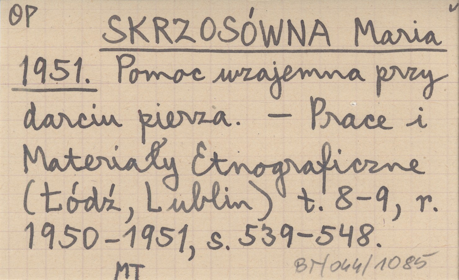 Prace i Materiały Etnograficzne (Łódź ; Lublin ;) , T. 8-9, r. 1950-1951: 539-548.