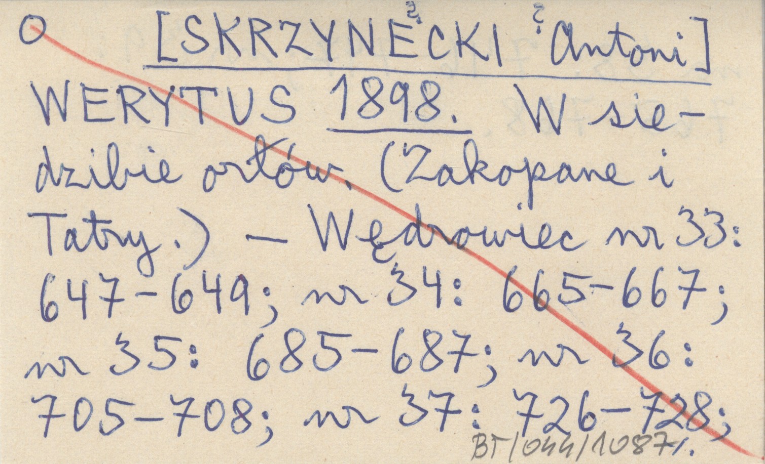 WERYTUS [SKRZYNECKI Antoni] 1898 W siedzibie orłów. (Zakopane i Tatry).