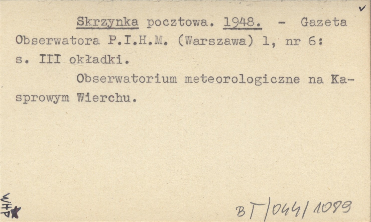 Gazeta Obserwatora Państwowego Instytutu Hydrologiczno-Meteorologicznego (Warszawa) , 1, nr 6: III. Obserwatorium meteorologiczne na Kasprowym Wierchu.