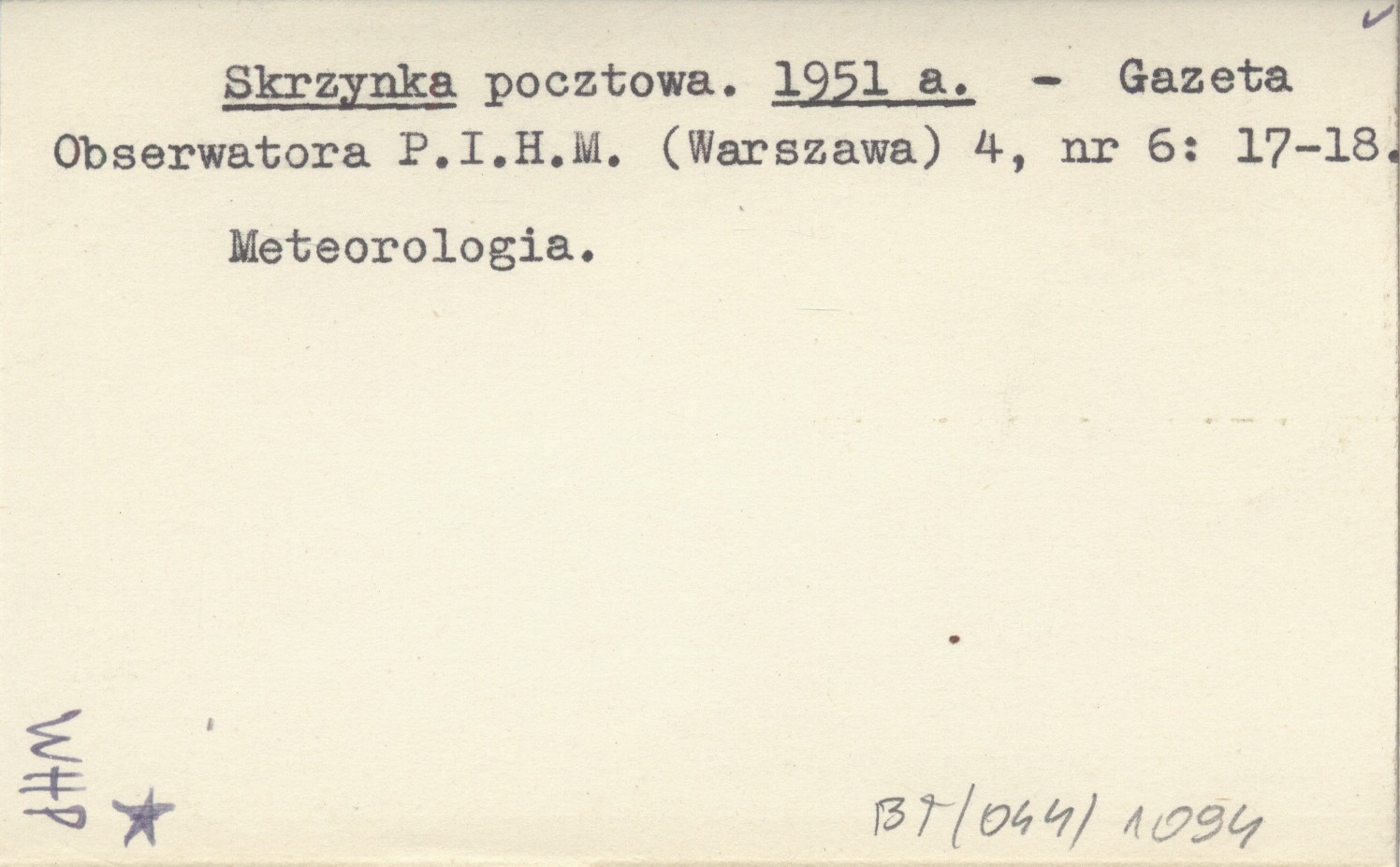Gazeta Obserwatora Państwowego Instytutu Hydrologiczno-Meteorologicznego (Warszawa) , 4, nr 6: 17-18. Meteorologia.
