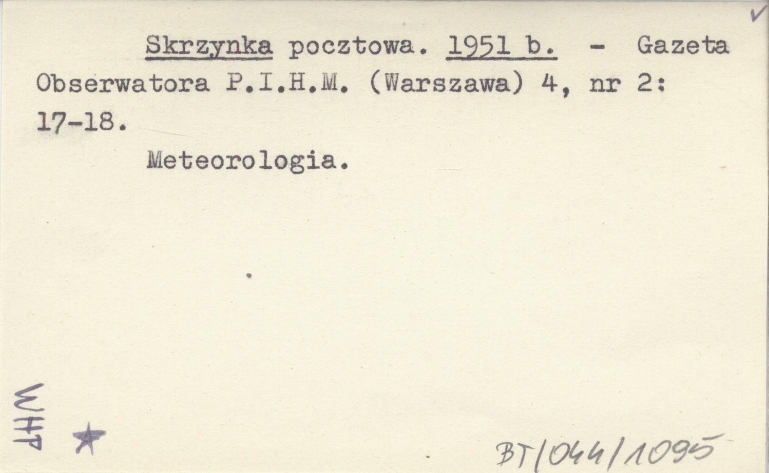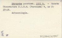 Gazeta Obserwatora Państwowego Instytutu Hydrologiczno-Meteorologicznego (Warszawa) , 4, nr 2: 17-18. Meteorologia.