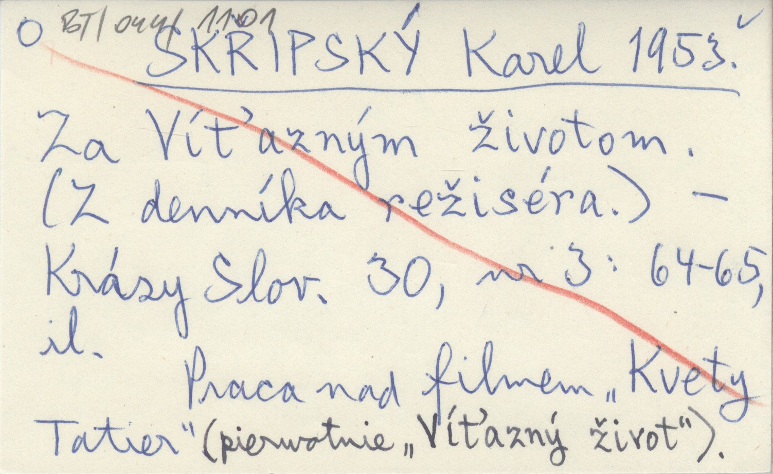 SKŰIPSKY Karel 1953 Za Ví»aznęm Ÿivotom. (Z denníka reŸiséra).