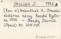 SKULINA J. 1972 [Rec. o:] Habovštiak A.: Oravské chotárne názvy. Banská Bystrica 1970.