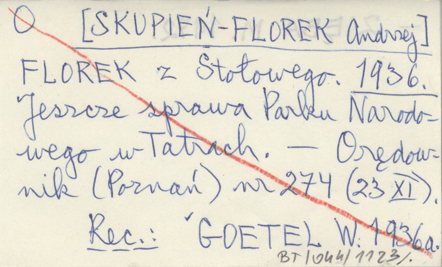 FLOREK z Stołowego [SKUPIEŃ-FLOREK Andrzej] 1936 Jeszcze sprawa Parku Narodowego w Tatrach.