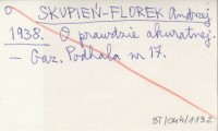 SKUPIEŃ-FLOREK Andrzej 1938 O prawdzie akuratnej.