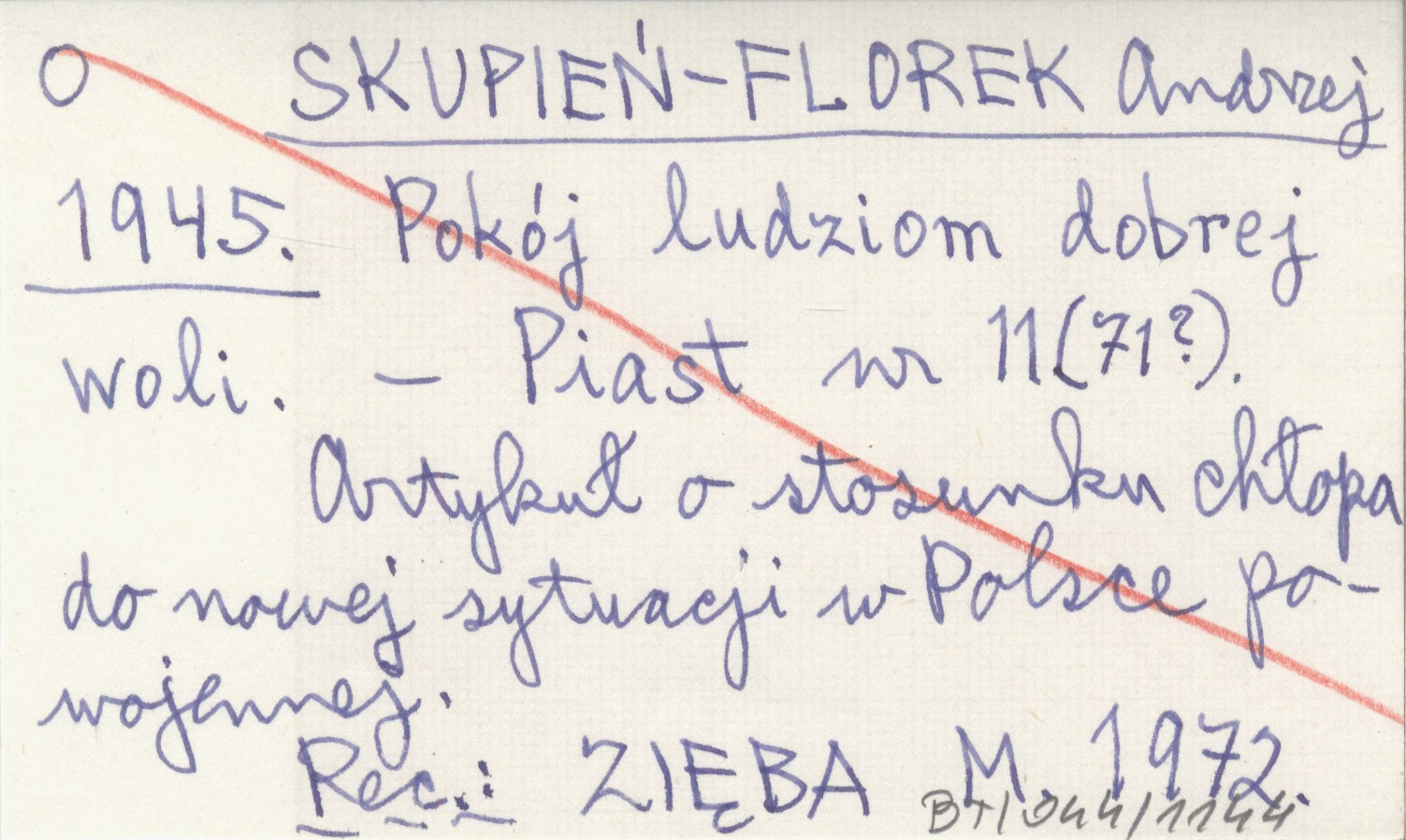 Piast, Nr 11 (71?). Artykuł o stosunku chłopa do nowej sytuacji w Polsce powojennej. REC: ZIĘBA M. 1972