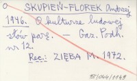 SKUPIEŃ-FLOREK Andrzej 1946 O kulturze ludowej słów parę.