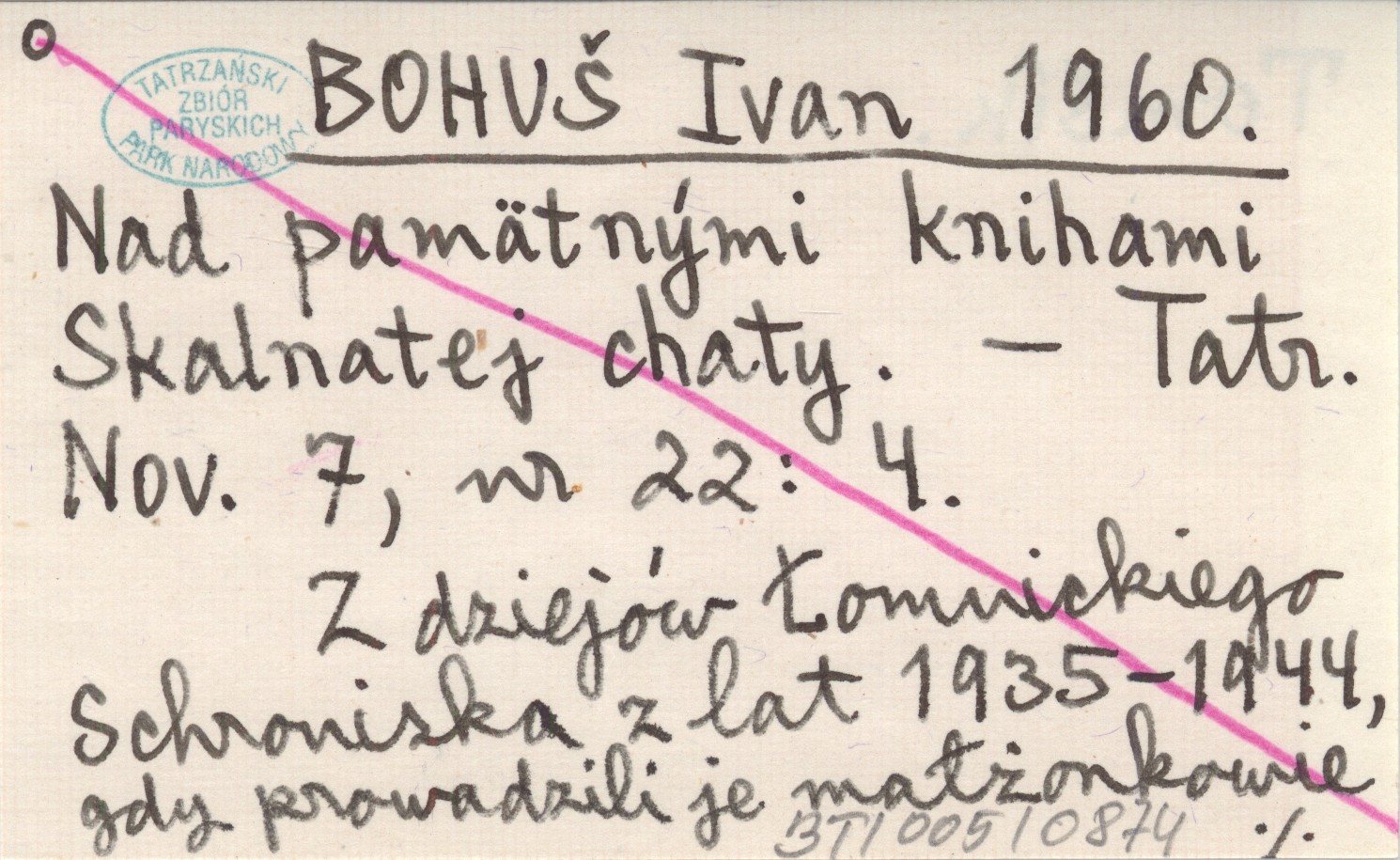 BOHUŠ Ivan 1960 Nad pamätnými knihami Skalnatej chaty.