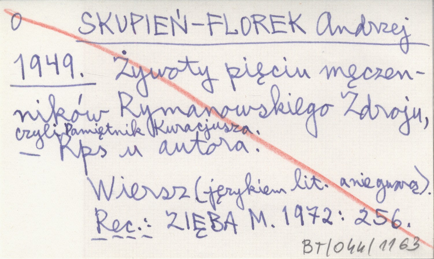 SKUPIEŃ-FLOREK Andrzej 1949 Żywoty pięciu męczenników Rymanowskiego Zdroju, czyli Pamiętnik Kuracjusza.