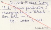 SKUPIEŃ-FLOREK Andrzej 1947 Sprawa pasterstwa i niszczenia lasu w Tatrach.