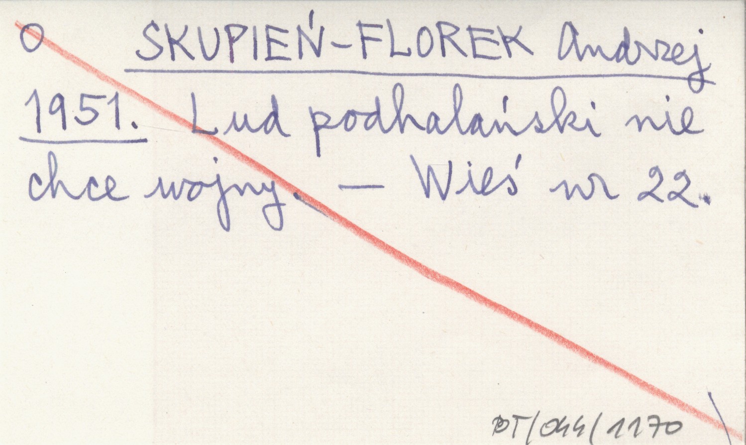 SKUPIEŃ-FLOREK Andrzej 1951 Lud podhalański nie chce wojny.