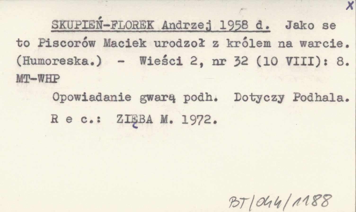 SKUPIEŃ-FLOREK Andrzej 1958 d Jako se to Piscorów Maciek urodzoł z królem na warcie. (Humoreska).