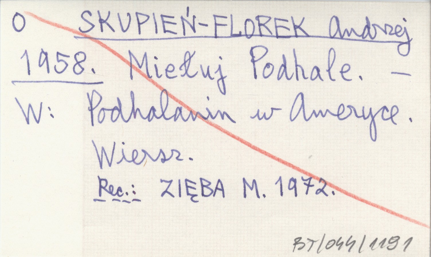 Podhalanin w Ameryce. , Wiersz. REC: ZIĘBA M. 1972