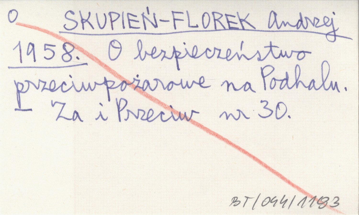 SKUPIEŃ-FLOREK Andrzej 1958 O bezpieczeństwo przeciwpożarowe na Podhalu.