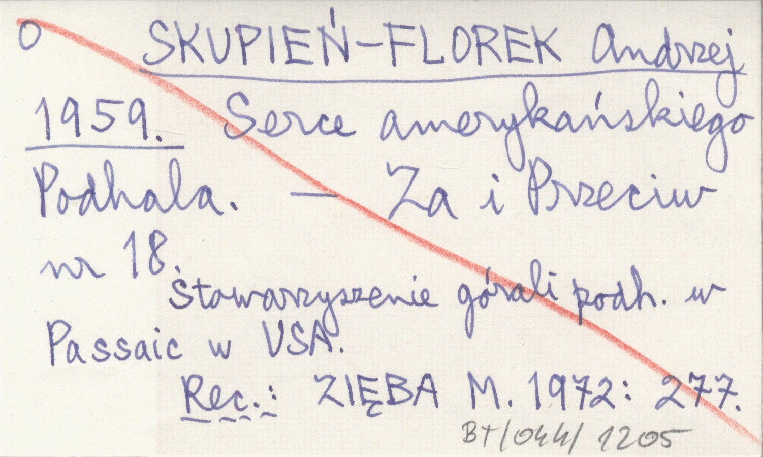 SKUPIEŃ-FLOREK Andrzej 1959 Serce amerykańskiego Podhala.